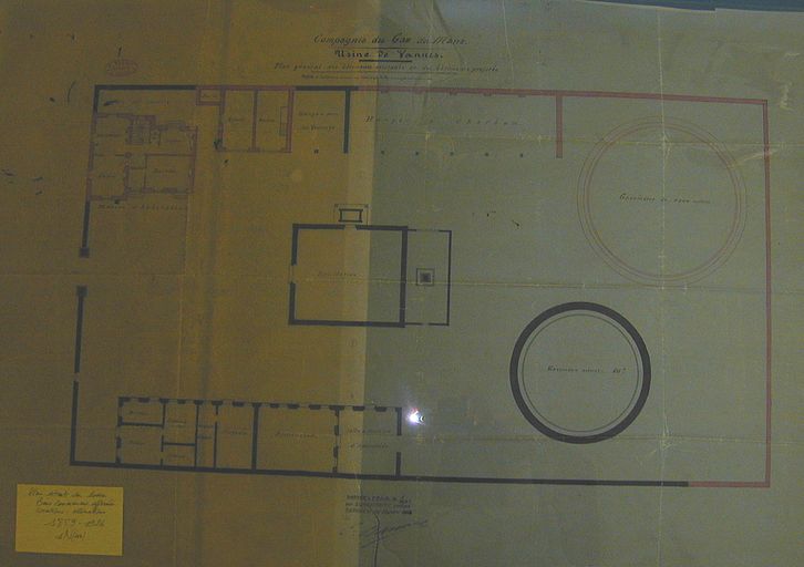 Le site de l'usine à gaz se compose en 1866 d'un gazomètre de 700m3, d'une cheminée, d'une halle à charbon, de fours, de condenseurs, d'un épurateur, d'un magasin et plomberie, d'un logement et d'un bureau pour le contremaître. L'usine s'agrandit par la suite et se dote de nouveaux bâtiments : la maison du directeur avec jardin, de nouveaux gazomètres, de parterres. La maison du directeur, située au sud de la parcelle, est perpendiculaire à l'avenue qu'elle borde. De plan massé rectangulaire double en profondeur, elle comprend en façade ouest un corps hors oeuvre en rez-de-chaussée qui d'après les plans anciens servait de bureau. A double façade, elle propose une élévation enduite d'un étage carré sur sous-sol sous une toiture à croupe comprenant un étage de comble. L'escalier de distribution est axial en façade sud. Les ouvertures sont encadrées de pierre et de brique. Entablement décoratif, chainages d'angle, corniche, belles et hautes cheminées en brique composent la décoration de la maison. Le soubassement est en appareil polygonal.
