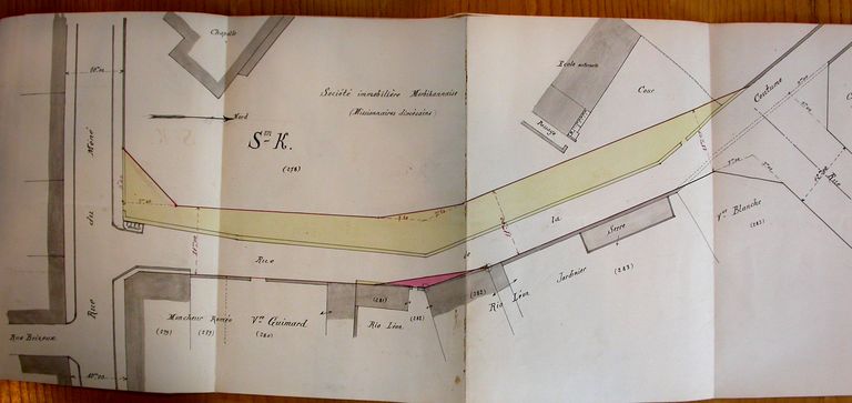 A. D. Morbihan. 3 O 2183. 1920. Alignement de la rue de la Coutume. Plan du 4 mars 1920, signé de l´architecte voyer soussigné, Rousseau.