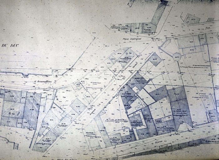 L'ancienne place Stalingrad et l'étang au Duc : démolition de la place Stalingrad et des bâtiments la composant, comblement d'une partie de l'étang au Duc en bordure de l'escarpe nord-est de la chaussée en prévision de son élargissement futur. La chaussée perd son nom de chaussée du Moulin et devient chaussée d'Arromanche. Démolition de l'ancien déversoir qui permettait de réguler le niveau des eaux, d'un ancien lavoir et d'une petite maison rue Ernest Renan.