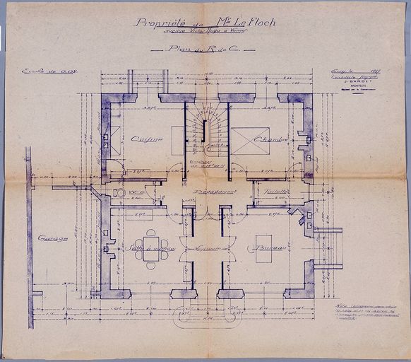 Maison construite pour monsieur Le Floch en 1927 sur les plans de Jules Bardet, par l'entrepreneur Le Gohlès, comprenant un atelier ou entrepôt isolé contemporain. L'architecte et l'entrepreneur ont apposé leurs nom et qualité sur la maison.