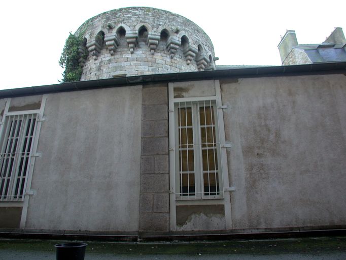 Le 9 juillet 1901, Emile Normand, maître ferblantier, fait une demande pour construire une cabine à acétylène dans la cour de la maison qu'il vient de faire édifier au 32 bis rue du Méné pour éclairer le rez-de-chaussée. Le plan montre que l'atelier de zinguerie est adossé à la tour dite des Filles (tour du Bourreau aujourd'hui). La cour a été couverte probablement dans la 2e moitié du 20e siècle. De même, l'atelier a été rehaussé d'un niveau habitable en façade postérieure, le toit modifié alors en toit en appentis.