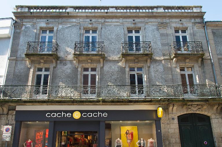 Immeuble implanté en alignement sur la rue, double en profondeur enduit, à quatre travées avec entrée latérale ouvrant sur un passage cocher pavé. Ce passage dessert la cour aujourd'hui couverte, et l'escalier, postérieur, en bois à rampe en fonte. L'entrée est surmontée d'une sculpture en haut-relief en granite. La façade enduite est ornée de pilastres colossaux cannelés ou lisses soulignant le passage cocher et la façade. La toiture est en terrasse. La dépendance adossée à la tour, à un étage carré, est couverte en appentis, la partie de sa façade subsistant est en pan de bois.