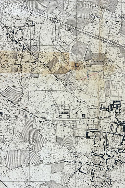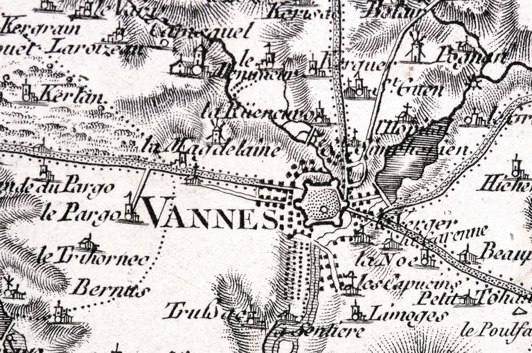 Le percement de l'avenue Roosevelt, ancienne route puis route d'Auray, résulte de la régularisation du tracé de chemins ruraux par l' ingénieur des Ponts-et-chaussées Detaille de Keroyant dans la 2e moitié du 18e siècle : son plan de la traverse de vannes est conservé dans le fonds de l'Intendance à Rennes. Cependant, située en dehors de la ville ancienne, l'avenue Roosevelt resta vierge de toute construction jusqu'à la fin du 19e siècle, époque où intervint l'édification de l'Ecole Normale d'Instituteurs en 1882 et du réservoir d'eau potable en 1894.