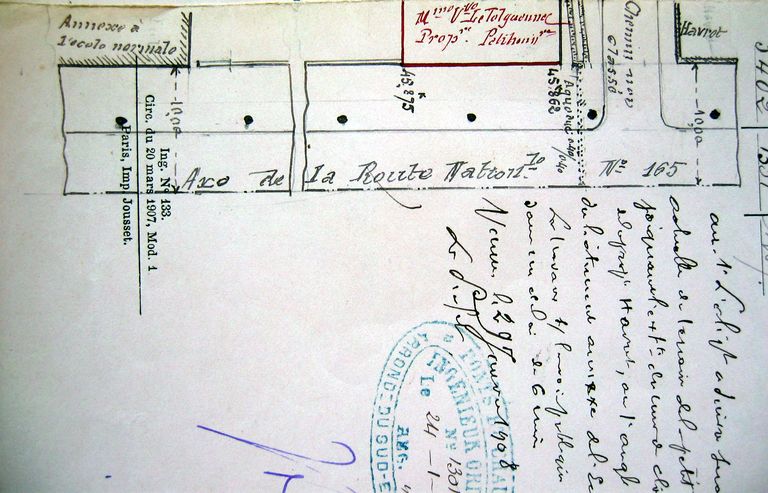 A. D. Morbihan. S 247. Alignements Vannes. RN 165. 1901-1920. 15 janvier 1909. Demande de Desmaison, entrepreneur de construire une maison pour Mme Le Tolguennec, à l´angle de la nouvelle rue (Françoise d´Amboise).