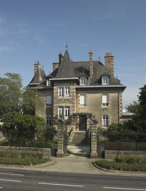 Hôtel construit en retrait sur la rue avec jardin environnant sauf à l'ouest. Double en profondeur, la maison, couverte d'un toit à croupes, est de plan rectangulaire, sur lequel se greffent corps en hors-oeuvre et avant-corps. Sur la façade antérieure, un avant-corps décentré, plus haut que le corps principal, couvert d'un toit en pavillon, abrite la cage d'escalier. Un corps en hors-oeuvre de plan massé couvert en pavillon prolonge le corps principal au nord-ouest. Un petit corps polygonal à usage de service, également en hors-oeuvre, est greffé sur le côté ouest ; il est couvert d'un toit polygonal. A l'exception du soubassement, en appareil polygonal, les façades sont enduites, les encadrements des ouvertures sont en pierre de taille de granite et brique. Sur le corps principal, les lucarnes sont couvertes à croupe et s'articulent par une noue. Une marquise en verre abrite l'entrée principale au sud à laquelle on accède par un escalier droit en granite. L'entrée de la cour est marquée par deux piliers en pierre de taille. Il existait en façade postérieure un escalier droit parallèle centré qui menait au jardin.