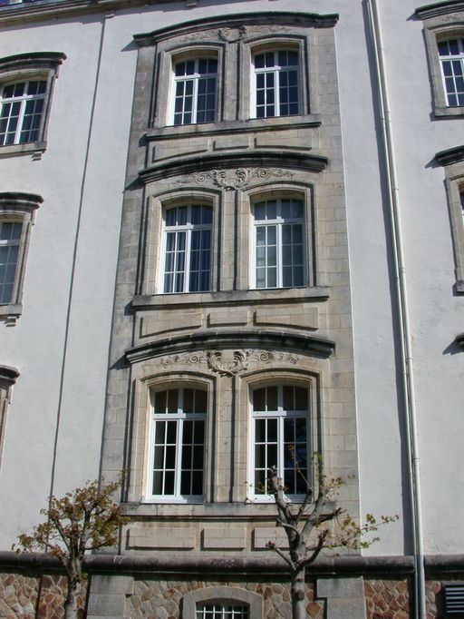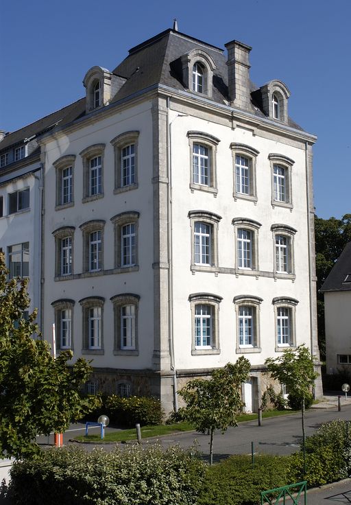En 1880, le préfet décide de l´achat d´une prairie sur la route d´Auray. Les plans sont signés de l´architecte du département Maigné en 1881, la construction achevée en 1883. En fort retrait de la route, le bâtiment principal compose une masse impressionnante : le corps central limité par deux pavillons se déploie sur treize travées à deux étages sur étage de soubassement. Pour éviter une certaine monotonie, les baies médianes du corps central sont jumelées sous un larmier, le tympan réservé à un décor de palmes et de rinceaux en relief ou en creux. La travée centrale double qui abrite la cage d´escalier se signale par l´utilisation de la pierre de taille, du calcaire de Saint-Savinien. Ateliers et cuisines occupent le rez-de-jardin, l´administration et le réfectoire le rez-de-chaussée, des classes et la bibliothèque, le premier étage et deux grands dortoirs le second.