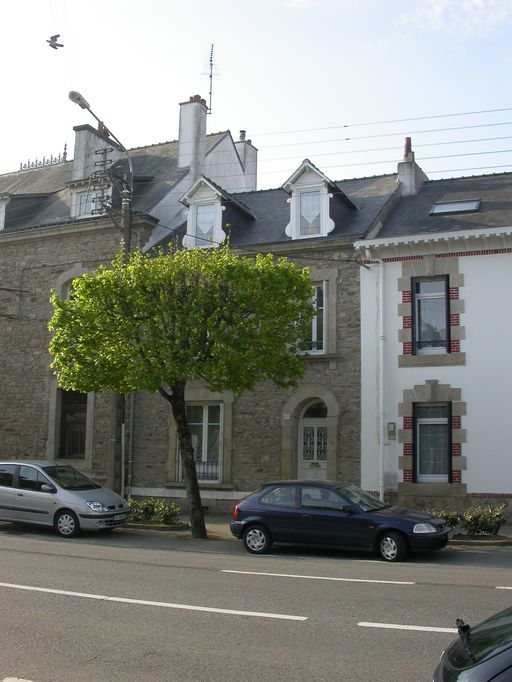 Cette maison appartient à un groupe de trois maisons en alignement sur l'avenue qui, bien qu'implantées sur une parcelle traversante, privilégie l'exposition principale au nord car donnant sur l'avenue Roosevelt, preuve de la prééminence de celle-ci sur le plan urbanistique. Elles rompent avec les premières implantations sur ce côté de la rue, p. 55, 58 qui privilégiait l'orientation à l'est sur le jardin. Cette maison qui aurait été construite en 1906, adopte pour sa porte, à une date précoce, le style Art Nouveau, peu présent dans l'architecture vannetaise.