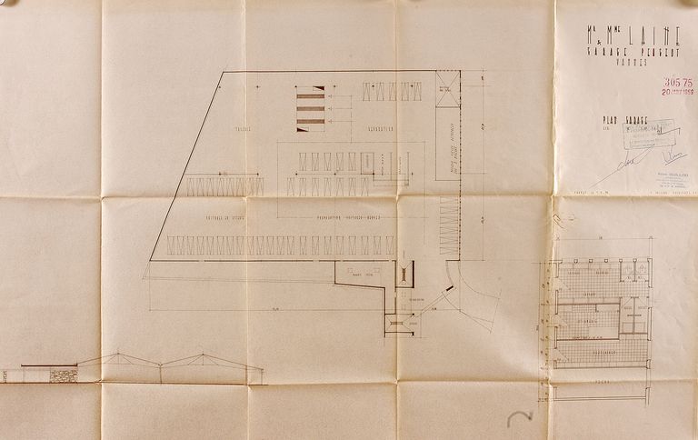 La villa est construite au tout début du siècle dernier, en 1902-1903, pour M. Marcotte puis agrandie pour monsieur Quirot de Poligny sur les plans de l'architecte E. Gemain le 31 juillet 1911. La propriété est ensuite vendue à Louis Lainé qui construit un garage de réparation automobile Peugeot sur les terrains de la villa d'après les plans de l'architecte Yves Guillou vers 1958-1960. La demande de permis de construire remonte à 1958. Il est accordé sous réserve que la zone boisée indiquée sur le projet soit maintenue. Le certificat de conformité est accordé en 1965. On relève dans les archives plusieurs demandes dont une faite par Francis Huchet entrepreneur le 10 juillet 1903 pour un alignement concernant un mur de clôture surmonté d´une grille et porte cochère de la propriété de M. Marcotte et le 8 mars 1907 pour l'ouverture d'une porte piétonne dans le mur de clôture. Autre demande faite cette fois-ci par l'entrepreneur Lefèvre pour le compte de monsieur de Poligny concernant un pavage devant sa propriété. Les travaux d'agrandissement pour Quirot de Poligny sont réalisés par Lefèvre. La maison a été détruite dans les années 1990, le garage quelques années plus tard. Seule l'aile dévolue aux vidanges des voitures et à la station-service est conservée mais transformée.