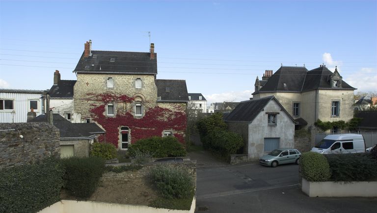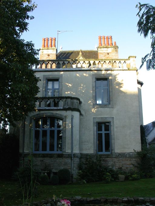 Maison à l'origine isolée bâtie en retrait de rue avec un grand jardin environnant clos de murs. Double en profondeur, la maison, couverte d'un toit à croupes polygonales, est de plan complexe. Le plan de base est en équerre, sur lequel se greffe en façade postérieure un corps à étage carré couvert en terrasse formant balcon. L'escalier, implanté dans le corps polygonal latéral nord en demi-hors-oeuvre est en bois, à retours avec jour central. Un avant-corps polygonal fait saillie sur la façade sud. La maison montre une élévation enduite d'un étage carré surmonté d'un étage en surcroît. Les encadrements des ouvertures et les lucarnes à décor trilobé sont en pierre de taille de granite. Les souches de cheminées en pierre sont surmontées d'un ornement de conduit polygonal en brique.