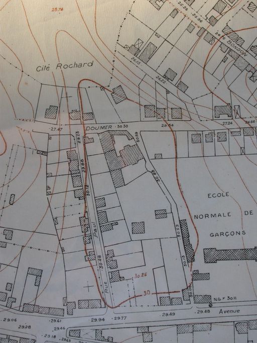 Le lotissement dit lotissement cité Rochard est situé de part et d'autre de la rue Jean Frélaut. Une impasse de 8 m, actuellement rue Rouget-de-L'Isle dessert le versant nord de la rue. C'est un lotissement de 36 lots (?) dont 8 invendus en 1938.