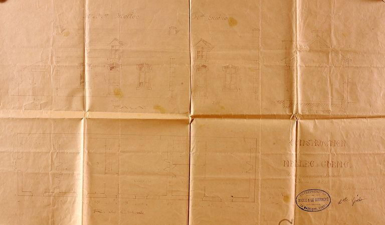 Ces deux maisons sont construites en 1933, la grande pour Mr Mellec, la seconde pour Mr Guého, par les entrepreneurs Madec et Le Guernevé, du quartier de la Madeleine. Les plans et élévations sont datés du 8 février 1933. A la fin du 20e siècle, la dépendance en alignement à l'ouest est transformée en habitation et les greniers en étage en surcroît.