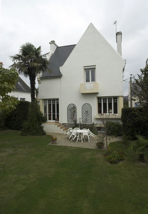 Belle maison des années 1930 sans doute des mêmes architectes (Lamourec et Bardet) que le n° 12 de la rue dite maison Ty Breiz, moins transformée mais qui s'apparente à cette dernière par un certain nombre de détails : ouvertures d'angle, enclos sur la rue, ferronnerie en cercles concentriques incrustée dans les façades. C'est ce qui justifie la sélection. C'est également la 2e fois dans Vannes que le nom du commanditaire est identifié par une initiale sur la souche, phénomène souvent observé sur les grandes maisons bourgeoises en milieu rural. La niche à chien est également un caractère plutôt rural.