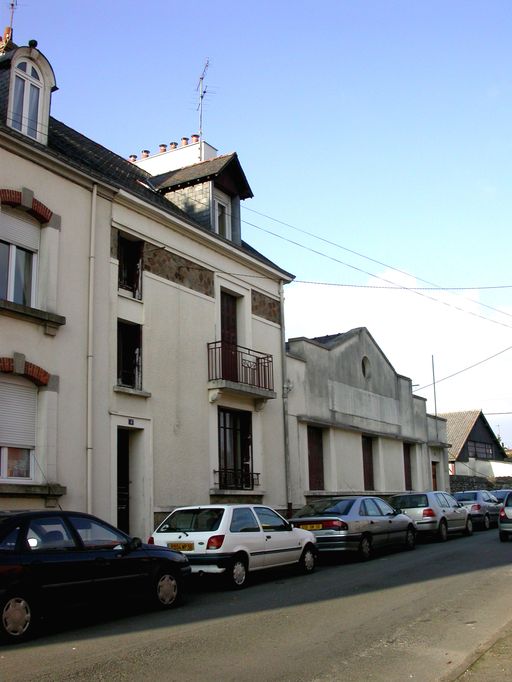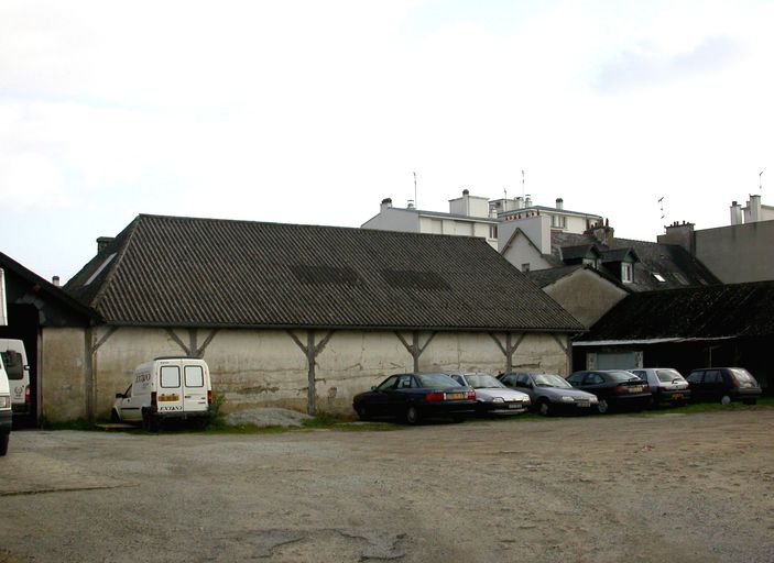 La maison principale est construite sur la rue François de Chateaubriand, à l'alignement de cette rue. En moellon enduit, elle est double en profondeur et possède un étage carré et une élévation à travées à ouvertures en niveau décalé : la travée de la porte correspond à l'escalier médian à retours en bois. Un bandeau an appareil polygonal souligne le haut de la façade. Accolé à la maison, aligné sur la rue, les bureaux, en rez-de-chaussée surélevé sur espace ouvert, sont également en moellon enduit. Leur façade principale est orientée au nord sur la cour enclose, à laquelle donne accès une porte pour les bureaux, rue de Chateaubriand, et une porte charretière d'angle. Sur cette même cour sont édifiés deux hangars disposés en L à structure en pan de bois, qui devait à l'origine être en partie ouvert. Ils donnent également sur la 2e cour. On accède à la 2e cour, à l'ouest, par une entrée longeant le logement du gardien. Celui-ci est en moellon de granite enduit à ouvertures en brique, à étage en surcroît et élévation à travées. Simple en profondeur, il est orienté au sud et tourne le dos à la rue des grandes murailles qui le longe, sans ouvertures sur cette rue. L'entrée se fait en pignon. La cour ouest est fermée au sud un hangar ouvert sur piliers de bois, couvert en fibro-ciment.