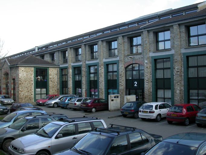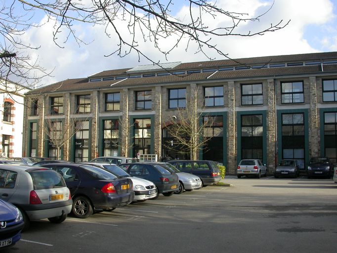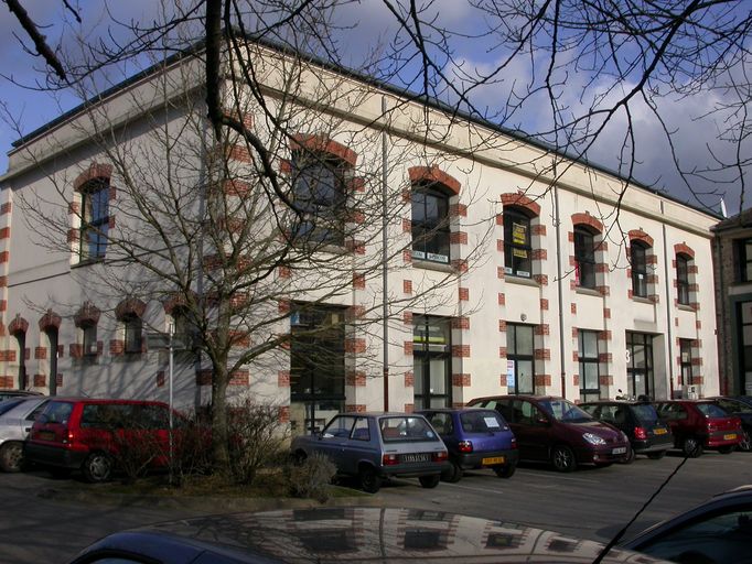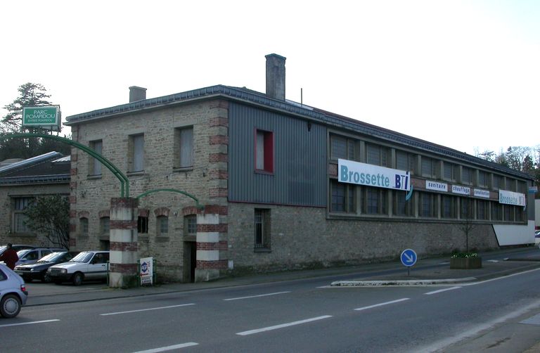 Le premier corps est construit en moellon enduit, avec des ouvertures et chaînes d´angle en brique et enduit alternés. Il possède une élévation irrégulière sur la rue, avec quatre travées à l´est, sept travées à l´ouest entourant un corps central à trois travées avec fronton sur la travée centrale. Il est aujourd´hui couvert en zinc d´un toit à croupes, mais à l´origine, il était comme le bâtiment en retour, couvert d´un toit en tuile industrielle, à croupes avec lanterneau. Le corps en retour vers le sud est en moellon de granite. Il se compose de onze travées au nord, de sept travées au sud, la huitième ayant été détruite en 1990. Ses ouvertures sont établies côté est et ouest ; autrefois formées de deux fenêtres rectangulaires superposées par travée, en brique, elles ont été agrandies vers le bas, formant une ouverture unique. La toiture, à longs pans avec lanterneau, à croupes, est en tuile industrielle. Ce corps à étage est accosté côté ouest d´un local en rez-de-chaussée couvert à croupes, avec deux frontons triangulaires en moellon : situé au dessus du ruisseau, ce corps de bâtiment abritait probablement les machines à vapeur.