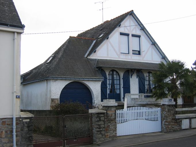 Maison qui se différencie du bâti alentour existant par son caractère de villégiature marqué par la forme des fenêtres et le décor de façade en faux pan de bois.