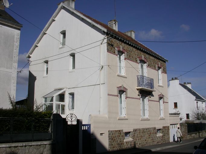 Maison isolée en alignement de la rue avec jardin en fond de parcelle. De plan massé, double en profondeur, elle possède un étage carré et un étage de comble visible dans le pignon et une élévation sur rue à trois travées de type ternaire sans entrée en façade principale. Elle est enduite, avec bandeaux de brique, soubassement en appareil polygonal repris au niveau supérieur de l'étage carré, ses ouvertures sont en granite et brique ; porte-fenêtre axiale avec balconnet et garage aligné à l'est.