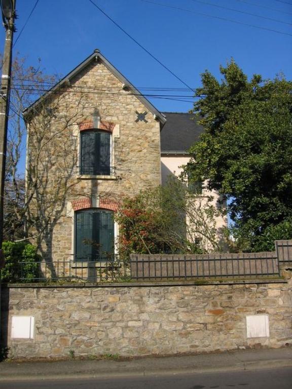 Maison isolée établie en retrait de la voie, orientée plein sud, avec un jardin environnant. La maison, double en profondeur, est à faux plan à avancée à pignon sur jardin traité en léger décroché. La partie en retour comprend l'escalier de distribution médian. Elle montre une élévation en partie désenduite et possède un rez-de-chaussée sur sous-sol surmonté d'un étage carré et d'un grenier éclairé par un pignon coiffé d'une toiture à demi-croupe. Les encadrements des ouvertures sont en brique et ciment enduit.