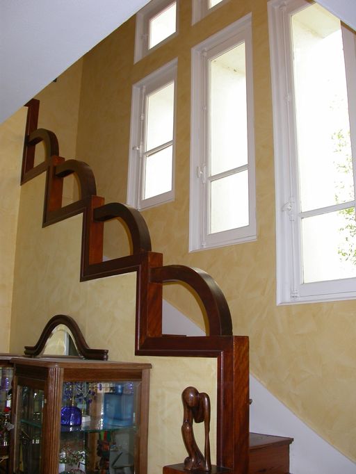 Belle maison des années 1930 sans doute des mêmes architectes (Lamourec et Bardet) que les n°20 et 22 de la rue et qui semble moins transformée que ces dernières. Ces maisons s'apparentent entre elles par un certain nombre de détails : baies thermales, enclos sur la rue, colonne ventrue. La ferronnerie en cercles concentriques sur la porte d'entrée, la rampe de l'escalier intérieur sont en plus pour cette maison. C'est ce qui justifie la sélection.