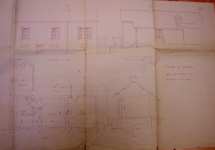 La forme de la parcelle, angulaire et de dimensions modestes, est liée à sa position limitrophe de la parcelle d'origine du lotissement. C'est ce qui détermine la construction d'une maison modeste, à l'alignement de la rue avec petit jardin postérieur clos de murs. De plan massé rectangulaire et double en profondeur, elle est en rez-de-chaussée surélevé sur sous-sol.