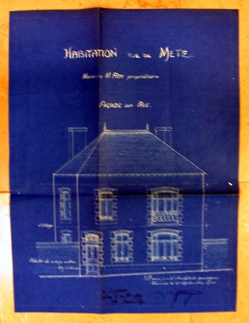 Maison du premier quart du 20e siècle construite sur des plans dressés par Edmond Gemain pour madame Maxime Roy négociante en matériaux de construction. Le cadastre numérisé indique 1921 comme date de construction. L'établissement d'un garage au rez-de-chaussée au milieu du 20e siècle a entrainé la modification des ouvertures, la porte qui donnait originellement accès à la cour et la fenêtre du bureau ont cédé la place à une porte de garage.
