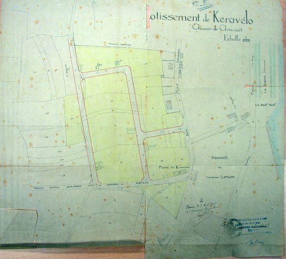 La maison est construite en 1930 d'après la date de construction mentionnée par le cadastre numérisé, ce qui est plausible : elle appartient au lotissement de Keravelo, créé en 1927.
