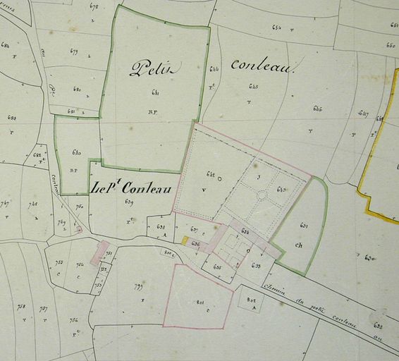 La ferme ne figure pas sur les plans cadastraux de 1809 et 1844 : elle est probablement construite en remplacement de celle située en prolongement du corps de logis du manoir, figurée sur le plan de 1844. Elle est construite vers 1900. La tour en hors-oeuvre au sud pourrait être postérieure : Bien qu'elle ne figure pas, non plus que le corps en retour, sur le plan de la reconstruction de 1945, elle ne semble pas postérieure aux années 1920.