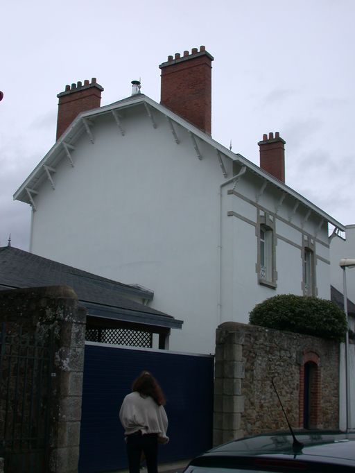 Maison isolée établie en retrait de rue avec jardin en fond de parcelle. La maison est de plan massé double en profondeur. Elle montre une élévation à deux travées enduite sur sous-sol d'un étage carré et d'un étage en surcroît. Le toit à longs pans est à demi-croupe fortement débordantes sur les côtés, les pans bordés d'un décor en bois découpé soutenus par des aisseliers. La porte d'entrée est latérale. Les encadrements des ouvertures sont en pierre de taille de granite.