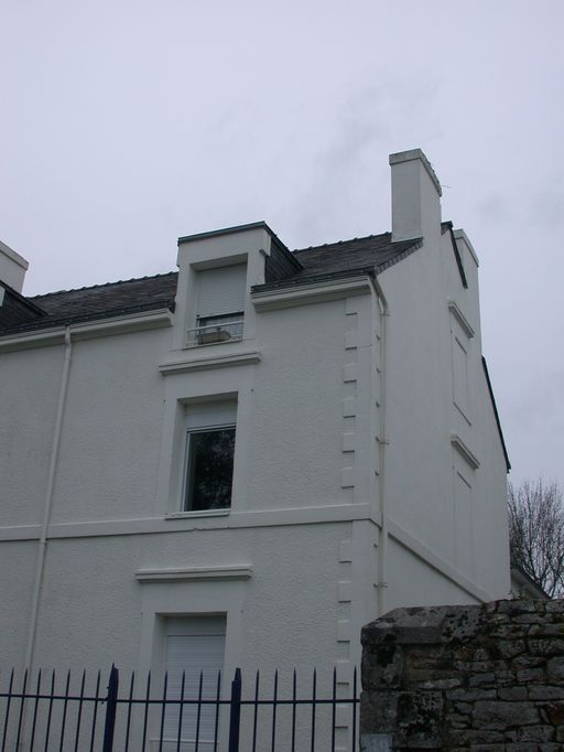 Maison isolée à l'origine établie en retrait de rue avec jardin en fond de parcelle. La maison est de plan massé double en profondeur. Elle montre une élévation à travées enduite sur sous-sol d'un étage carré et d'un étage de comble récent. Entrée d'origine en pignon.