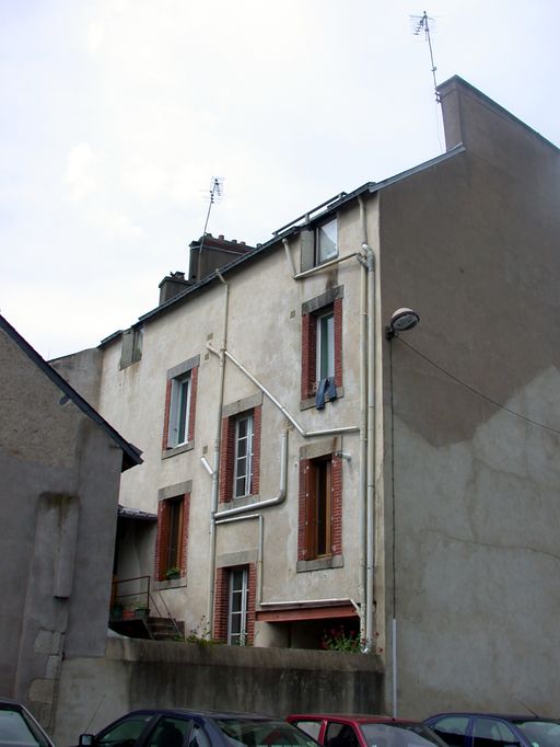 Immeuble double en profondeur avec pignons aveugles car initialement mitoyens. Il possède rue Leclerc une élévation irrégulière à 2 étages carrés et un étage de comble, à quatre travées. Un passage couvert latéral donne accès à une cour postérieure dans laquelle sont édifiées des écuries enduites à comble à surcroît. Les encadrements des ouvertures sont en granite sur la façade sur rue, en brique sur la façade sur cour, les lucarnes et les ouvertures des écuries sont en bois.