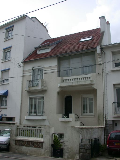 Maison mitoyenne en retrait de la rue, établie sur une parcelle laniérée très profonde. Elle est construite en moellon revêtu d'un enduit partiellement moucheté. La travée latérale est traitée en loggia, aujourd'hui partiellment fermée à l'étage. Le décor est très présent dans les balcons traités soit en maçonnerie de ciment, soit en ferronnerie comme la rampe de l'entrée. La clôture du jardin, conservée, reprend le même décor.