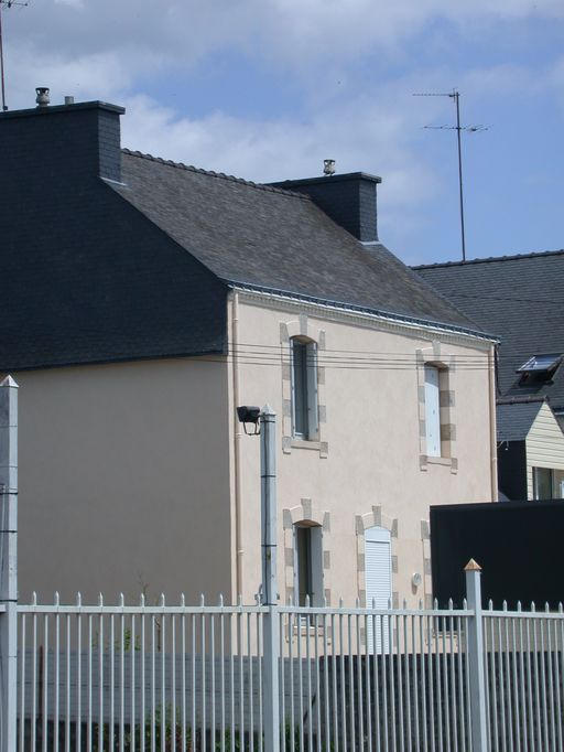 Maison construite en retrait avec jardin en fond de parcelle. C'est une maison de plan massé double en profondeur en faux type ternaire. Elévation enduite avec des encadrements d'ouvertures en pierre et tuile. La corniche est en tuile peinte.