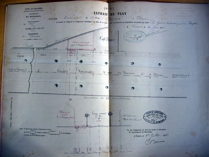 A. D. Morbihan, S 257. Route nationale 166. Arrêtés d'alignement. Vannes, 1830-1920.