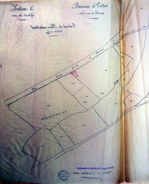Le nouvel octroi de la route de Rennes est prévu dès 1895 : il remplace le bureau situé au départ de l'avenue de Verdun (n°24). Cependant la demande de pont-bascule devant l'octroi, datant de 1896, mentionne que le bureau d'octroi n'est pas encore opérationnel. La façade sur la rue a été désenduite. Le garage aligné au sud est postérieur. La parcelle d'origine a été divisée.