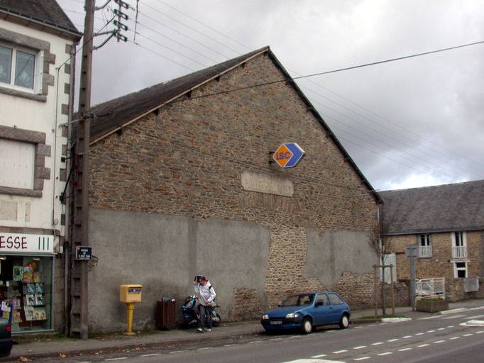 L'annuaire de 1932 mentionne un certain Le Calonnec, marchand de fourrages aux Trois moulins qui pourrait être à l'origine de ce hangar, dépôt de paille et fourrages. L'ensemble des bâtiments peut dater des années 1925-1930. L'inscription sur le pignon mentionne "Langlais, pailles et fourrages". Une ouverture cochère a été bouchée en pignon du bâtiment sud.