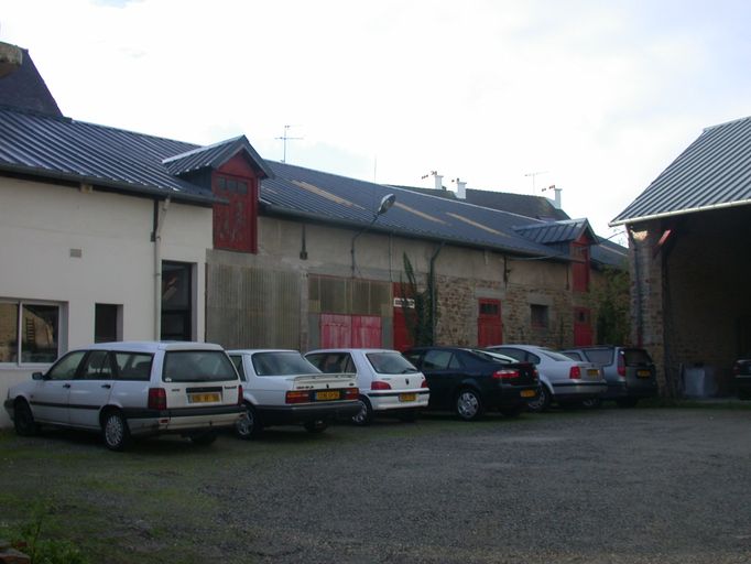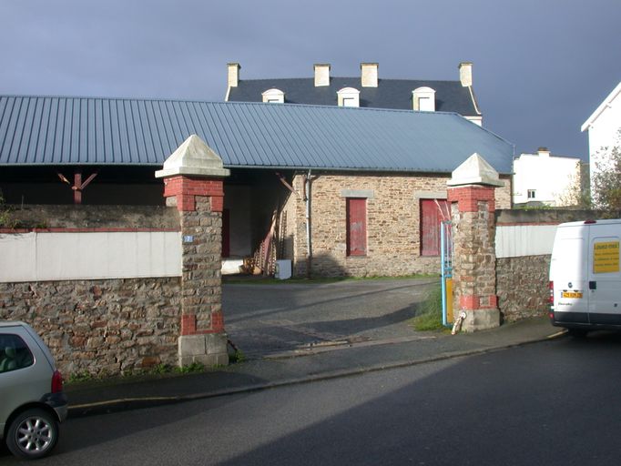 Entrepôts de stockage et de déchargement édifiés en moellons de granite et couverts en appentis. Un des 2 entrepôts comprend un quai de déchargement avec à l'arrière des pièces de stockage. Celui perpendiculaire à la rue est surmonté d'un grenier. Le logement patronal est à plan double en profondeur coiffé d'une toiture en tuile à longs pans. La maison de plan rectangulaire montre une façade ordonnancée d'un étage carré avec sous-sol. Des tableaux en brique forment l'appui des fenêtres cernées également de ciment. Bandeau décoratif en brique.