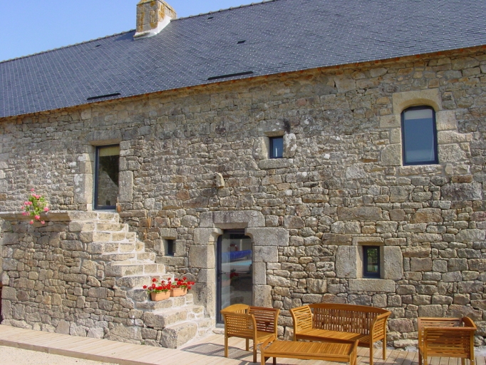 La mise en oeuvre des façades est presque toujours en moellons de granite. Les exemples de façades en pierre de taille sont rares sur la commune : un exemple d'une ferme non repérée à Kervoine. Cependant la mise en oeuvre peut être soignée lorsque des moellons choisis de moyen ou grand appareil sont disposés en assises régulières, comme sur les fermes du Ganquis (fig.15), de Trébointel (fig.62) ou de Kerclément.