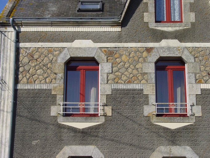Modénatures et enduits : Dans les années 1930, la mode des décors en enduit projetés et moulés se généralise sur les façades des maisons y compris lors de rénovations de logis plus anciens (fig.32). Parfois cette modénature qui participe au décor s´exprime dans l´esprit du style Art Déco (fig.10 et 6).
