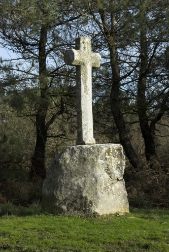Représentée sur le plan cadastral de 1845, à l'époque où les tracés des chemins de Kernours et de Kerlézo étaient différents des tracés actuels, la croix date peut-être du 17e siècle. Vers 1847 on voyait sur le point culminant de la lande de Lann-Mané-Roller, les débris d'une allée couverte de 10 m de long (Cayot Delandre, 1847).