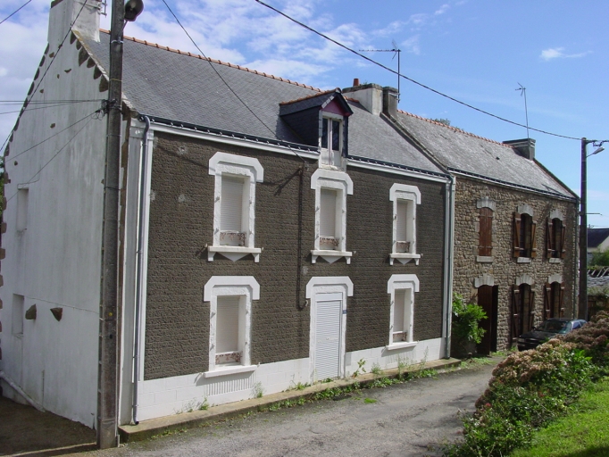 Le bourg actuel de Belz adopte la forme d'un village rue le long de la départementale rebaptisée en agglomération rue du Général De Gaulle et rue Laennec. Toutefois la trame du bourg ancien et notamment l'empreinte des anciens communs libres de toute construction, est bien perceptible à l'ouest et au sud de l'église ainsi que sur la petite place Mané-er-Bleun (fig. 7). Aujourd´hui l´urbanisation gagne d´anciens terrains agricoles au nord et au sud du bourg, joignant des écarts tels que Le Coedic et le Presbytère à l´est, les anciens lavoirs au nord (fig. 9) ou encore Mané-er-Lan à l´ouest. 55 maisons et 8 fermes sont repérées dans l'emprise du bourg dont 4 maisons sélectionnées. Un ancien manoir n´a pu être inventorié faute d´autorisation (AE 393). LES FERMES C'est dans la partie nord du bourg que subsistent 6 des 8 anciennes fermes repérées, les deux autres étant situées au sud de la départementale voire assez éloignée de celle-ci à l'origine. Au sud la ferme n°1 (fig. 10-11) est repérée route de Kerdonnerc´h (AE 121). Elle se présente sous la forme d´un logis à étage en partie habitable et a un double grenier. La ferme n°2 au sud de la mairie (fig. 12), dite aussi ferme Guillouard, ne conserve que son logis à étage de la fin du 19e siècle (AE 118) dont seule la façade sud de type ternaire est en place. Au nord de la départementale, la ferme n°3 (fig. 13) la plus ancienne (AE 530) ouvre sur la place Mané-er-Bleun. Elle est composée d´un logis étable à deux portes sous comble à surcroît doté d´une porte haute à accolade accessible grâce à un escalier extérieur (remonté). La pente de toit et la hauteur du comble sont remaniés aux 19e puis au 20e siècle. Deux autres corps de bâtiment aspectés au sud se trouvent en alignement a l´ouest, ainsi qu´une dépendance isolée au sud (fig. 14). Ils ne sont pas repérés car très dénaturés. La ferme n°4 actuellement en ruine (fig. 15), est repérée sur cette même place côté est (AE 44). Elle se compose du nord au sud de trois bâtiments alignés en barre : une grange-charretterie, un logis à pièce unique (ou techtal), un logis sous comble à surcroît ouvert d´une porte haute, avec étable en appentis sur la façade antérieure. La ferme n°5 (fig. 16) repérée place R. Cassin (AE 39), présente une façade sud à 4 travées dont les deux du centre ont des portes transformées en fenêtres, correspondant aux portes du logis et de l´étable. Une annexe existe en retour contre la façade postérieure. Autour de l´église et de son ancien placître, la ferme n°6 (AE 365, 367) présente un logis à étage de type ternaire qui s´apparente à une simple maison d´habitation ouvrant sur la place (fig. 27). La cour et les dépendances sont à l´arrière. La ferme n°7, repérée au nord de l´église (AE 93, 490-491) est la plus remarquable dans son enclos cerné de murs (fig. 17-18). Peut-être la métairie noble mentionnée dans les archives. La maison principale présente des éléments d'architecture du 16e siècle, tels des linteaux sculptés en remploi au sud et une fenêtre à traverse au nord, est très remaniée. Le logis étable du 19e siècle en alignement à l'est conserve une cheminée du 17e siècle. Enfin la ferme n°8 présente une façade sur la rue des Tennis (AE 530). C´est aussi un logis à étage à fonction de chambre et de grenier. Un appentis postérieur servait d´étable et de dépendances ouvertes sur la cour. Une remarquable grange-charreterie (fig.21) subsiste contre le mur sud de l´enclos (AE 546). LES MAISONS 55 maisons sont repérées dans le bourg dont 4 font l´objet d´une sélection. Dans ce panel la majorité, c´est à dire 37 maisons, est de plan massé à étage (AE 28, 33-34, 45, 52, 60, 61, 63, 64, 88, 90, 91, 98, 101, 109, 137, 142, 143, 144, 145, 148, 151, 186, 188, 210, 237, 238, 259, 321, 394, 424, 425, 431, 438, 439, 446-447, 547, 552), 14 sont à deux pièces sous comble à surcroît (AE 12, 18, 19, 55, 85, 86-87, 157, 179, 202, 203, 289, 323, 355, 423), 2 sont à pièce unique (AE 50, 58), 1 est de plan en L type années 1930 (AE 480), et 1 est de plan en U sans étage (AE 155) considéré comme unicum avec ses deux pavillons en retour sur la façade postérieure. Les maisons à étage bordent la voie principale, rues De Gaulle et Laennec, mais sont aussi regroupées aux abords de la place de l´église et de celle de Mané-er-Bleun. Bon nombre d´entre-elles présentent une façade de type ternaire. Cependant on observe des façades à 2 voire une seule travée pour les plus simples (fig. 23). Dans la rue principale se trouvent les commerces avec boutiques aménagées dans tout ou partie du rez-de-chaussée des immeubles et aussi des ateliers dans l´arrière cours (fig. 23). Cinq maisons à étage sont couvertes d´un toit à croupe, certaines adoptent dans ce cas un plan double en profondeur, à l´image du n° 1 place Mané-er-Bleun supposé être l´ancienne gendarmerie (fig. 32-33). Les maisons sans étage, à 2 pièces symétriques ou non sont situées principalement rue Nachtel, rue de Mané-er-Lan et rue de Kerhuen au nord. La tradition orale rapporte que les maisons de la rue Nachtel sont des logis d´ouvriers venus à l´époque du grand chantier d´aménagement de la nouvelle départementale et de la construction du pont Lorois (fig. 37-38). Celles du début du 20e siècle sont assimilables aux maisons de pêcheurs que l´on rencontre dans les autres hameaux et écarts côtiers de la commune (fig. 36).