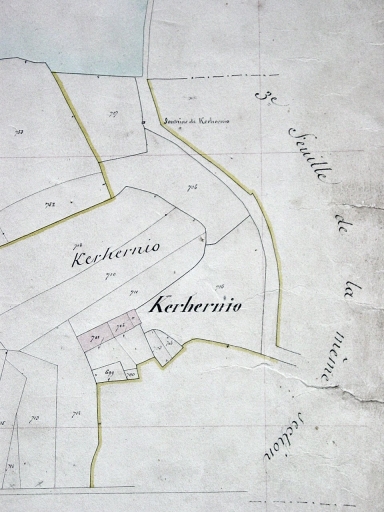 La ferme de Kerhernio figurée sur les plans cadastraux de 1811 et 1845 n'existe plus. Cet écart est constitué d'habitations construites en bordure de la D 9 à compter de la fin du 19e siècle, mais surtout dans les années 1920-1930. Ce sont en majorité des maisons modestes de familles de pêcheurs. La construction de la conserverie Le Douarin est achevée en 1939, juste avant la seconde guerre mondiale. Elle fonctionne jusqu'au début des années 1980 sous l'appellation : Les Délices de Saint-Cado (fig.10).