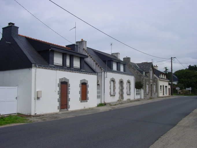 Mis à part quelques maisons situées en retrait ou au centre de parcelle (fig. 4 et 5), l'habitat se développe de façon linéaire et principalement au nord de la route de Pont-Lorois. 6 maisons sont repérées, 3 à Kernio ouest (A 150, AH 128 et 1511), 3 à Kernio est (A 958, 130 et 480). A Kernio ouest on retiendra dans un ensemble de 4 maisons alignées, un modèle non remanié de maison à deux pièces symétriques, lucarne pignon et appentis postérieur, ayant servi de café : n° 45 route de Pont-Lorois (fig.5). A Kernio est, c'est l'ensemble de l'alignement qui est repéré, dont une maison à étage flanquée d'une boutique (fig.8) et deux maisons réunies en une seule comme l'indique l'unique porte (fig.9).