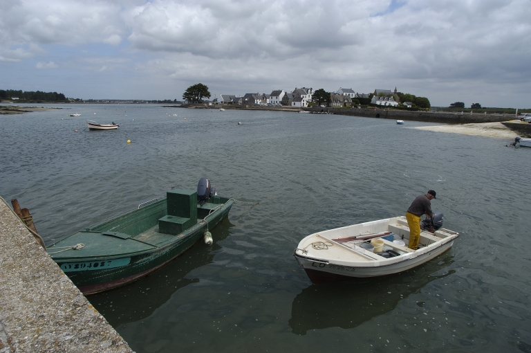 Un ermitage attribué à saint Cado est établi sur l'île au Haut Moyen Âge. Les Bénédictins de Quimperlé recueillent cet ermitage en 1089. Ils en font un prieuré dont ils gardent les bénéfices jusqu'à la Révolution (Danigo, 1986). En 1636, Dubuisson-Aubenay qui passe la rivière d'Etel depuis l'île, en donne une rapide description avec sa chapelle, son prieuré et les quelques maisons qui y sont construites (annexe 1). En1791 le prieuré et ses dépendances, dont l´ancienne maison prieurale, une seconde maison et un colombier, l´ensemble en ruine, sont estimés avec la chapelle et sa fontaine à 450 £ (AD56, Q 72). Sur le plan cadastral de 1811, il n´existe aucune maison proche de la chapelle. Seules deux groupes de maisons alignées en barres figurent au sud-ouest de l´île au débouché de la digue. Sur le plan cadastral de 1845, on aperçoit, en plus des maisons précitées, le presbytère ainsi que le grand calvaire bâti en 1832. De nouvelles constructions s´implantent sur l´île dans la seconde moitié du 19e siècle et au début du siècle suivant. Les premières installations du chantier ostréicole Ezano, datent vers 1905. Le pardon de Saint-Cado célébré le 21 septembre, a été peint à plusieurs reprises par Désiré Lucas (1869-1949). Comme l'évoque son tableau de 1903, il attirait encore au début du 20e siècle une foule considérable de pèlerins (fig. 3).