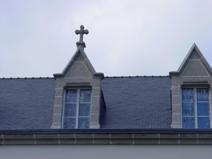Croix sculptées sur les lucarnes axiales de chacune des façades.