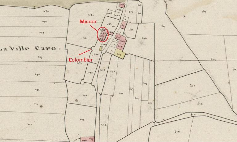 La Ville Caro est citée dans le texte de la réformation (recensement des nobles de la commune) de 1427 : "l'hébergement de la Ville Caro entien appartenant à Jehan Mancel noble". Lors de la montre (convocation de l'arrière- ban de la noblesse à la revue militaire) de 1464, Jehan Mancel qui dispose alors de 70 livres de revenus est porté défaillant. À celle de 1477, Amaury Mancel dispose de 60 livres de rente, de même qu’en 1481, Jehan Mancel qui, lui, est alors représenté par Guillaume Mancel. Dans le texte de la réformation de 1514, on trouve : "la maison et métairie de la Villecaro qu'à présent possède Vincent Mancel, seigneur dudit lieu." Le texte de la réformation de 1666 mentionne : "La maison noble de la Ville Caro, fieff rosles, dismes et moullins, la méthairie de la Porte et autre méthairie noble nommé la méthairie de la Brousse".