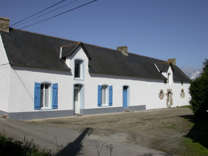 SITUATION ET COMPOSITION D'ENSEMBLE La répartition de l´habitat est dense : les écarts sont en moyenne à moins d´un kilomètre les uns des autres. Le regroupement de plusieurs unités d´exploitation au sein d´un écart appelé "village" caractérise l´habitat ancien. Nombreux sont les villages composés de deux à six fermes. D´autres sont plus développés, notamment les groupements autour d´une chapelle dont l´organisation préfigure celle des bourgs avec le sanctuaire au centre (cf. Le Moustoir, Ménec, Lapaul, Le Plec, Locqueltas, Sainte-Marguerite). Mais la majorité des villages est implantée de part et d´autre d´une voie de desserte, sans réelle concertation d´ensemble. Les habitations sont le plus souvent orientées sur la voie qui dessert le village et non pas toujours au sud ou à l'est comme le voudrait la logique. Près de la ria d'Etel et de ses bras, au nord et à l'ouest de la commune, on trouve des villages juchés sur des hauteurs émergentes à proximité des marais (cf. Kerbleï, Mané Ménigo, Kerpuns, Rosmarian ...). De nombreux murets de pierres sèches délimitent encore des parcelles de terres et les bordures des chemins reliant les fermes les unes aux autres. Les fermes isolées sont marginales : habitat de lande qui se distingue par la petitesse et l´absence de parties agricoles. A l´inverse, on trouve de grosses fermes isolées dont les dépendances sont nombreuses et développées comme à Grand Bodeven ou à Pen Pont. Généralement, les fermes regroupent sous le même toit logis et étable au rez-de-chaussée et comble servant de grenier. Les adjonctions successives sont construites en alignement de cette unité initiale et forment une ligne de faîtage continue. Les dépendances isolées (fournils, granges, remises, celliers) sont placées soit dans le prolongement de cet alignement, soit en face ou en retour d'équerre, voir un peu à l'écart. La grande majorité des fermes est donc à cour ouverte (cf. Kercado, Cler Huen, Lapaul, Kernéhac, Kerohan, kerdréven). Cette disposition en alignement par ajouts successifs d'éléments au sein d'une ferme ne doit pas être confondue avec les villages composés de logis modestes contigus les uns aux autres, souvent associés à un parcellaire laniéré et étroit, mode d'exploitation collectif des terres en usage sur certaines zones pauvres (cf. Kergoal). MATERIAUX ET MISE EN OEUVRE Les matériaux du gros oeuvre reflètent l´homogénéité du sous-sol formé de granulite.Toutes les fermes et maisons antérieures au 20e siècle sont construites avec ce granite. Généralement les façades sont en moellons, et les entourages des baies y compris les jours de combles, les rampants des pignons et les souches de cheminées sont en pierre de taille. Quelques fermes conservent des façades en pierre de taille de moyen appareil (cf. Locqueltas, La Forest). D´autres présentent des façades de moellons bien équarris aux assises régulières (cf. Kerbleï). Les façades sont enduites sur les maisons tardives situées dans les bourgs et près de la ria ou l'influence de l'habitat marin se fait plus sentir. Aujourd´hui, les toitures sont majoritairement en ardoise. Celle-ci a remplacé les couvertures en chaume, paille de seigle ou scirpes des marais, généralisées dans les fermes jusqu´au 19e siècle. On notera les modifications de pente de toit accompagnées du rehaussement des surcroîts, liées au changement de couverture. Quelques anciennes fermes sont aujourd'hui couvertes en chaume mais le roseau y a remplacé le seigle (cf. Lapaul, Cochelin, Le Leslé, Le Penher, Kerbachic, Ménec, au bourg rue Cheveched). Les plafonds des logis et des étables sont traditionnellement hourdis à quenouilles et chaulés. Cette technique offre une excellente isolation dont beaucoup d'exemples sont encore en place (cf. Lapaul, Moulin de Cochelin, Kerivarho, cellier de Kerchir). STRUCTURE ET PLANS L'habitat rural se partage en deux catégories : - l'habitat mixte caractérisé par la cohabitation des hommes et du bétail sous le même toit ; - l'habitat à seul usage d'habitation défini par l´absence de cohabitation entre hommes et animaux. Si la première catégorie domine pour les périodes anciennes (17e, 18e et début 19e siècles), la seconde est mieux représentée aujourd´hui car il subsiste désormais plus d´habitat de la seconde moitié du 19e siècle et du 20e siècle. I. L´habitat mixte Cette catégorie d´habitat regroupe les logis dits à fonctions multiples dont la caractéristique est d´intégrer dans un même volume les fonctions d´habitation et d´exploitation (le logis, l´étable et le grenier). Majoritaire aux 17e et 18e siècles, elle perdure jusqu´à la fin du 19e siècle. C´est une cohabitation naturelle à l´époque qui n´est pas la conséquence d´une situation de dénuement mais d´un mode de vie admis par tous. Cette pratique est d´ailleurs répandue dans toute l´Europe là où domine la polyculture-élevage : elle permet une surveillance rapprochée des bêtes et un surcroît de chaleur. Le type le plus simple dit logis-étable connaît des extensions en longueur et en hauteur qui génère des variantes. Le logis-étable (53 repérés/20 sélections) Type d'habitat largement dominant durant l'Ancien Régime, le logis-étable est très représenté avec un nombre important de sélections : sur les vingt spécimens sélectionnés, dix-sept datent du 17e siècle. Il associe salle et étable sous le même toit, surmontées d´un grenier. L´accès peut se faire par une porte unique en façade, centrée ou légèrement décalée côté étable. Homme et animaux empruntent alors la même entrée sans qu'une cloison sépare obligatoirement les hommes des bêtes (cf. Lapaul, Kerbleï). L´apparition d´accès séparés au logement et à l´étable constitue une variante, cette solution différenciant ainsi plus clairement les fonctions agricoles et résidentielles. Un mur de refend