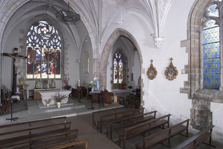 Sous la voûte en plâtre de 1892, une partie de l'ancienne charpente est conservée. Celle-ci est plus haute que la nouvelle voûte d'au moins un mètre cinquante. Sur le mur du chevet, au-dessus de la maîtresse-vitre, subsistent les vestiges d'une peinture murale qui représente le sommet d'une boule terrestre, la base étant tronquée par la nouvelle voûte en plâtre.