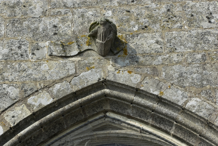 Des figures de sirène et de lion sont sculptées en ronde-bosse sur la partie basse des rampants du pignon du choeur, à côté des pinacles des contreforts. Le remplage de la fenêtre du chevet est rayonnant, il figure un quatrefeuille au centre d'un grand cercle. Un ange sculpté en haut-relief, au-dessus de la baie, tient un phylactère. Le porche sud présente une décoration flamboyante. Le pignon est accosté de contreforts très ouvragés, surmontés de hauts pinacles sculptés. La grande arcade brisée à nombreux retraits concentriques est encadrée d'une accolade, d'un faux pignon et de pilastres à pinacles. Un cadran solaire est sculpté dans le tympan du pignon. Les portes jumelées en anse de panier qui ouvrent sur la chapelle sont sculptées de grappes de raisins, de personnages et d'animaux et sont surmontées d'une accolade. Le trumeau qui les sépare est orné d'un dais polygonal à son sommet et d'un bénitier à sa base. Au transept nord, une petite porte avec accolade est encadrée de pilastres faits de colonnes torses soutenues par des personnages.