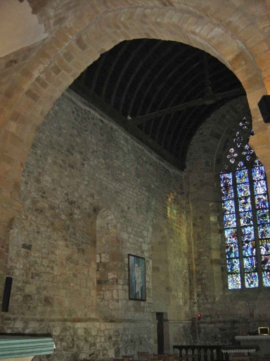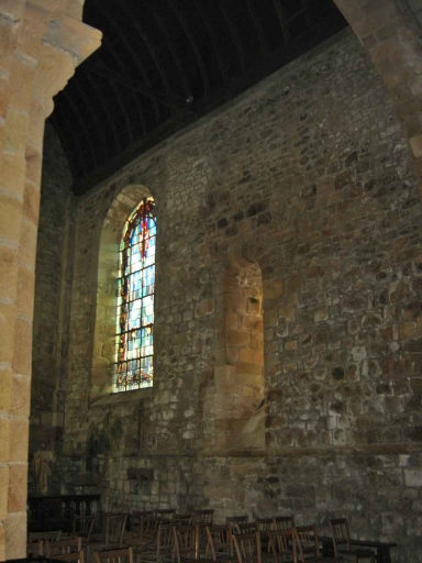 Le vaisseau central de la nef est dépourvu d´éclairage. Le bas-côté Nord était à l´origine percé en hauteur de baies de type meurtrière fortement ébrasées.