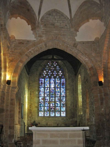 Le collatéral Sud était lui percé de baies plus larges, en plein-cintre à double voussure, que P. Guigon considère dater de la même période que les meurtrières.