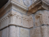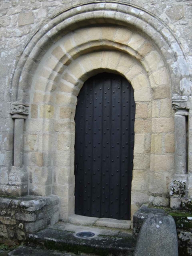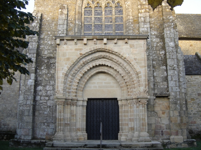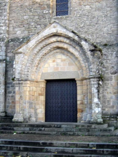 Au centre de cette façade est conservé un portail en arc plein-cintre, percé dans la maçonnerie et non en saillie sur le mur du bas-côté. Il s´agit d´un portail à double voussure, surmontées de deux tores reposant sur de courtes colonnettes en délit à bases et chapiteaux sculptés.